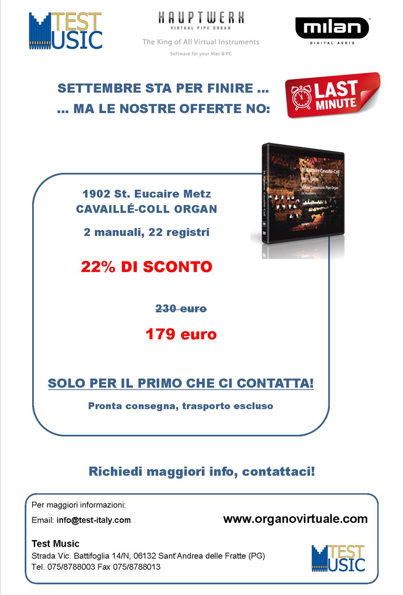 15% di sconto su software Hauptwerk e prodotti MDA